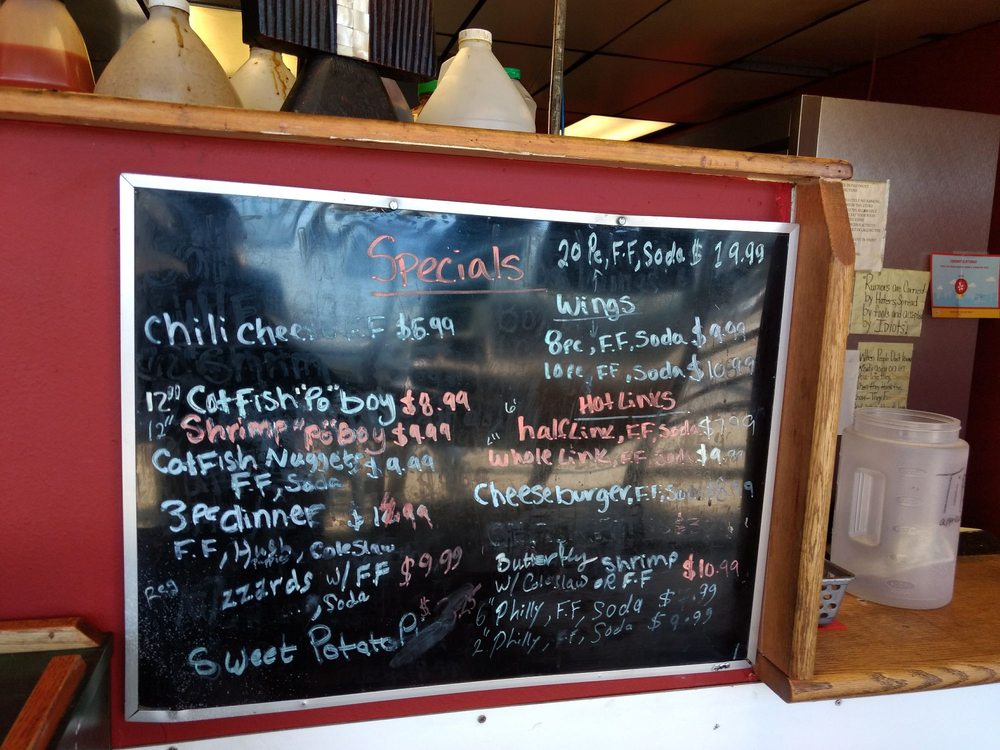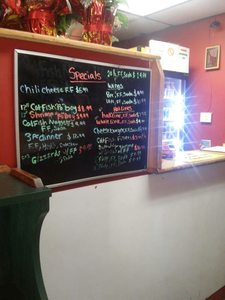 Served with fries and 1 can of soda. Two catfish fillet on a 12" hoagies, mayo, lettuce, tomato and a side of buffalo hot sauce.